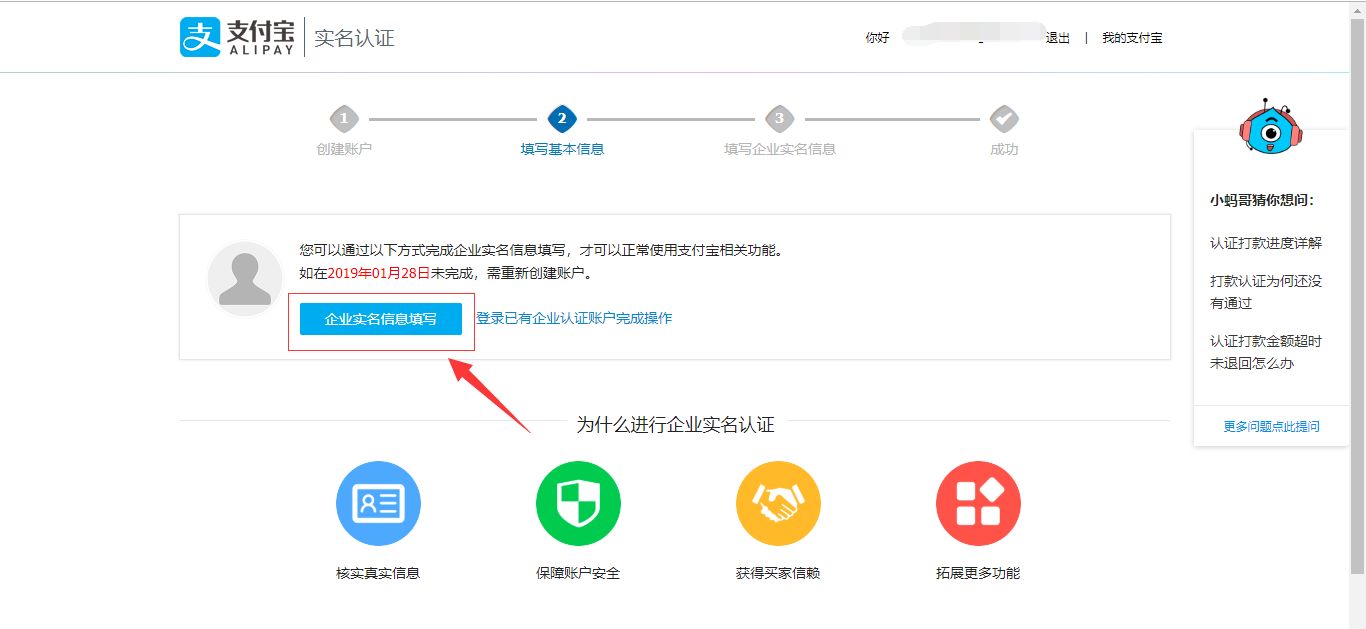 注册账号填写邮箱账号后,在邮箱中会收到一封邮件,点击“继续注册”,填写完所有信息后会出现“企业实名填写页面”,点击进入,填写信息通过认证即可,如图所示: